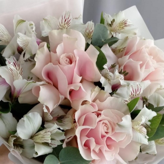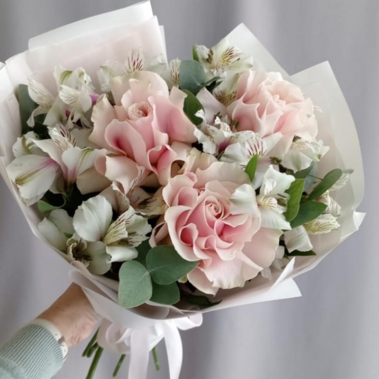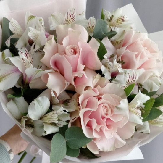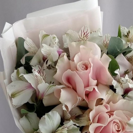 Букет из 3 французских роз и Альстромерии в Ессентуках
