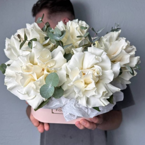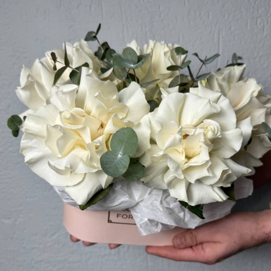 Композиция из белых французских роз и эвкалипта